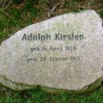 Robert Kirsten Webseite, GrablageS 23, ebenfalls Kapellenstrasse, Strassenseite wechseln, Zugang schräg gegenüber A. Kirsten Grab, dann links den Weg hinein (rechts zu Beginn Joost Grabstelle, siehe Elsa Kirsten/Pfeiffer geb. Joost), ca. Mitte des Weges rechte Seite, etwas zurückliegend (versteckt, je nach Bewuchs).
