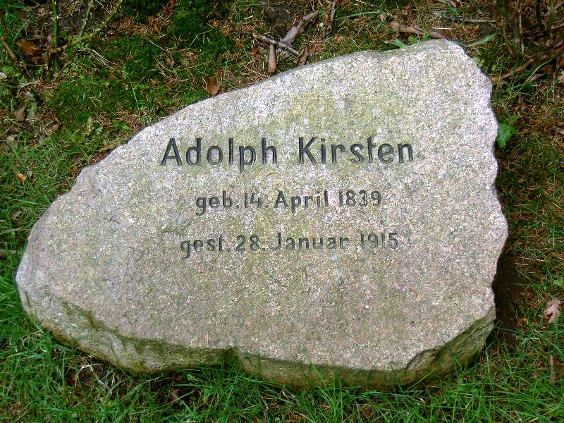 Heinrich Friedrich Kirsten, Z 11, Norderstrasse auf der Südseite, Weg gegenüber vom Denkmal des Grafen v. Goetzen, ca. 50 m geradeaus, dann Plattenweg links, ca 25 m, auf der rechten Seite.