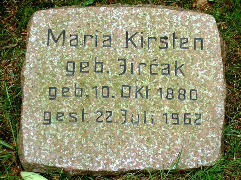 ![]() | Maria Kirsten #9 geb. Jircak geb. 10. Oktober 1880 gest. 22. Juli 1962 (81 J.) | ||||