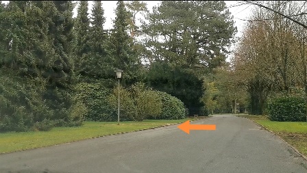 Kapellenstrasse (vom Eingang aus gesehen) bis zum Kreisel, von da in die Waldstrasse einfahren, Nebenalle kreuzen, bei „Hans-Albers“ Schild rechts einbiegen, geschlängelter Weg, bis zum Ende gehen, bzw. irgendwann links „Stiller Weg“, am Ende an einem freien Feld steht der grosse weisse Engel.