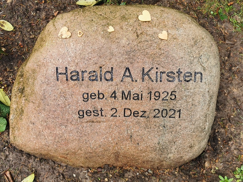 ![]() | Harald Adolph Kirsten #18 geb. 4. Mai 1925 "gest." 1 am 19.9.1944* gest. 2. Dezember 2021 (96. J.) | ![]() | Reeder, Schifffahrtskaufmann Geschäftsführer Miller International Schallplatten GmbH (EUROPA) | Zweiter Sohn von Adolph P. und Karin Kirsten (#10/11), | |